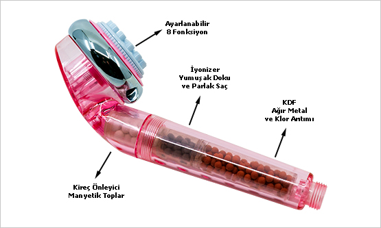 • Sudaki ağır metalleri, kimyasalları ve organik bileşenleri, özellikle de saçlara çok zararlı olan kloru filtreler.
